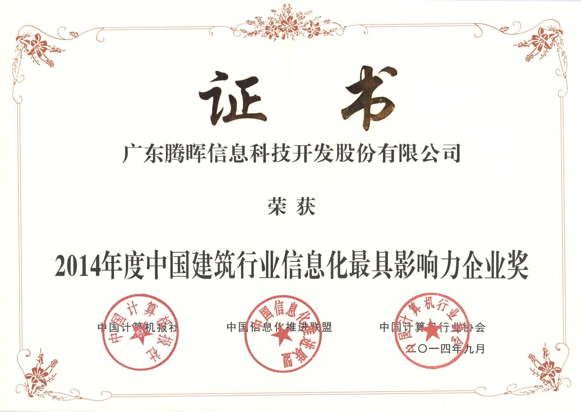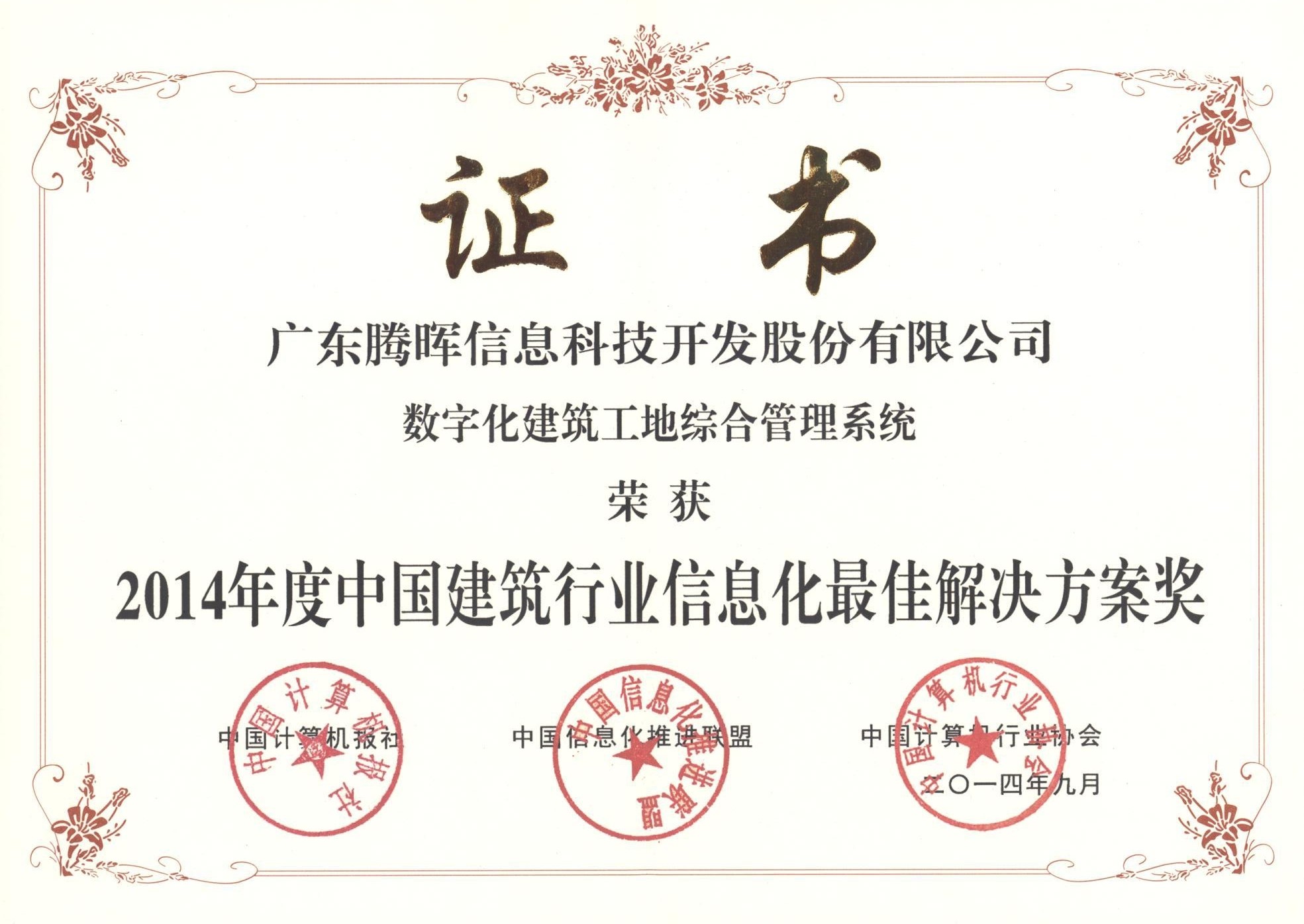 2014年榮獲中國建筑行業(yè)信息化最具影響力企業(yè)獎(jiǎng);