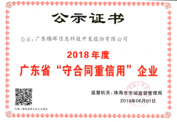 2019年連續(xù)三年榮獲“廣東省守合同重信用企業(yè)公示證書”;