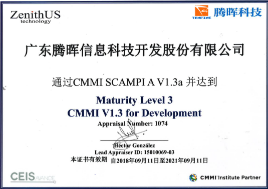 2013年通過美國卡耐基梅隆大學(xué)頒發(fā)的軟件成熟度管理體系CMMI 3級(jí)認(rèn)證;