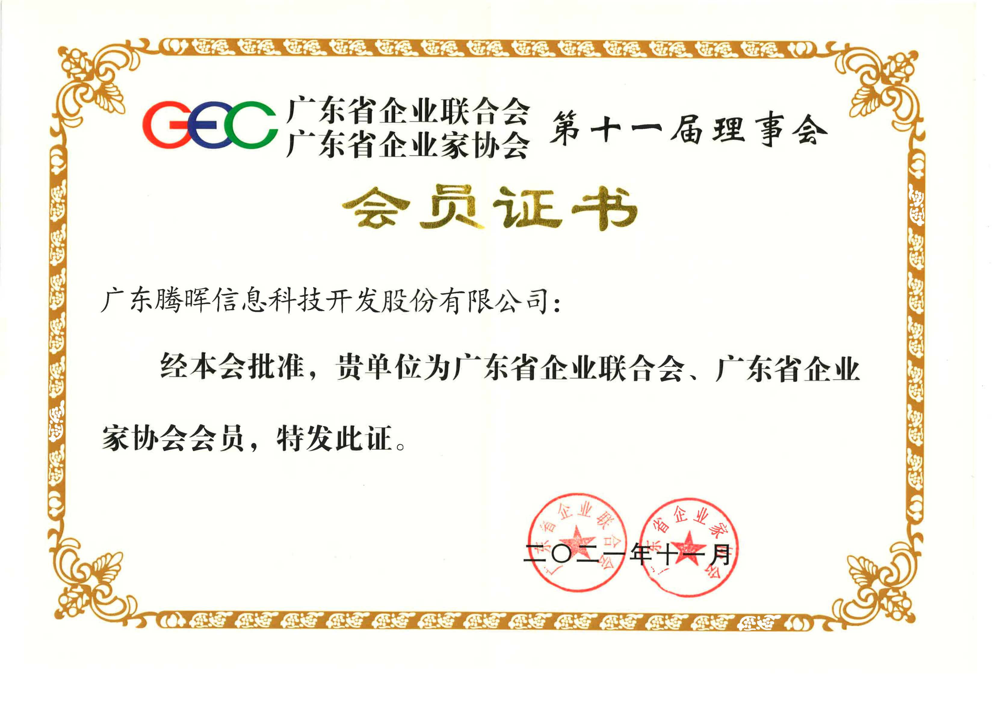 2021年批準(zhǔn)成為"廣東省企業(yè)聯(lián)合會(huì)、廣東省企業(yè)家協(xié)會(huì)會(huì)員”;